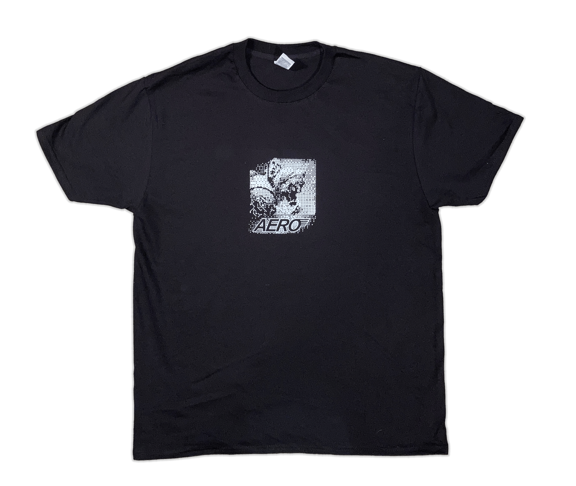black T-shirt 100 % cotton 215 g/m² handprinted white screen print